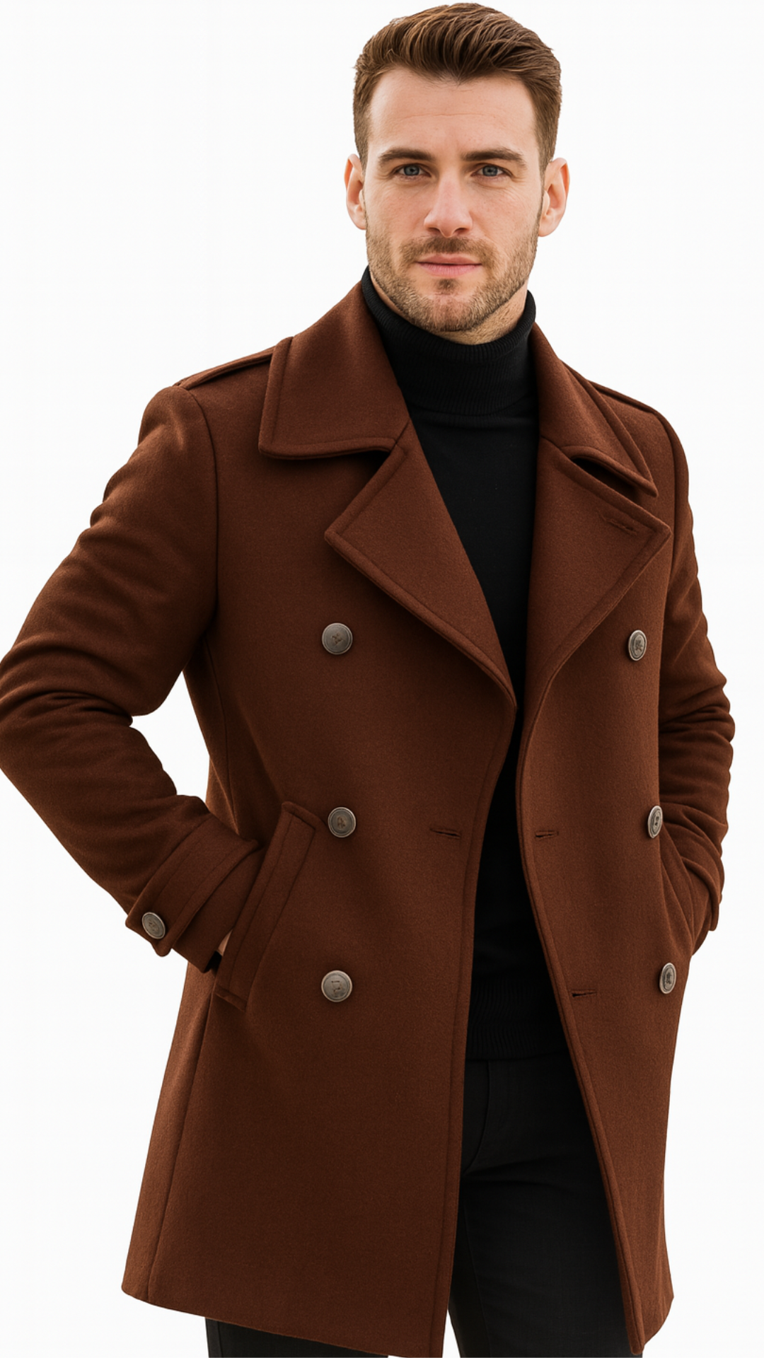 Valmistettu polyesteri–puuvillasekoitteesta, jossa on villakangasmainen viimeistely, takki tuntuu ylelliseltä ja pitää sinut lämpimänä viileinä talvipäivinä. Paksu kudos ja kaksirivinen napitus tuovat takkiin ryhdikkyyttä ja hienostunutta kaupunkilookia, joka toimii sekä arjessa että juhlavammissa tilanteissa.
